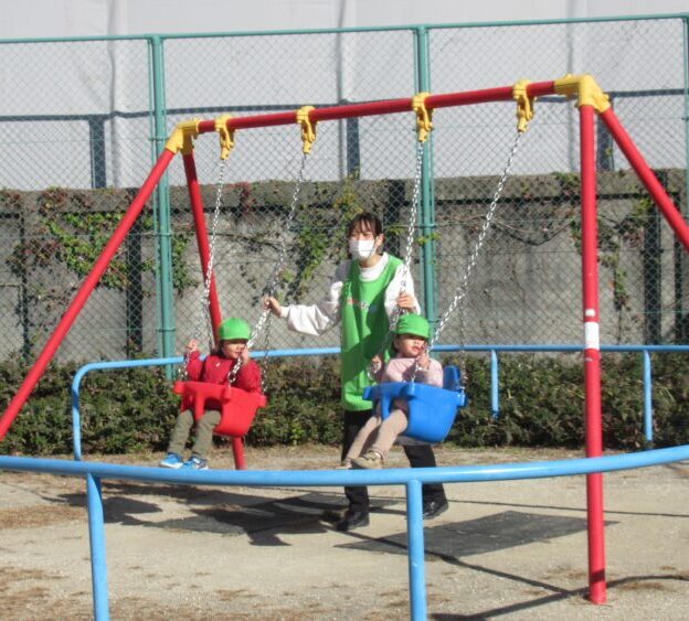 すべり台やブランコ大型遊具など、体をたくさん動かしながら楽しむ姿が見られました。お友だちとの関わりも増え、笑顔があふれる時間となりました。