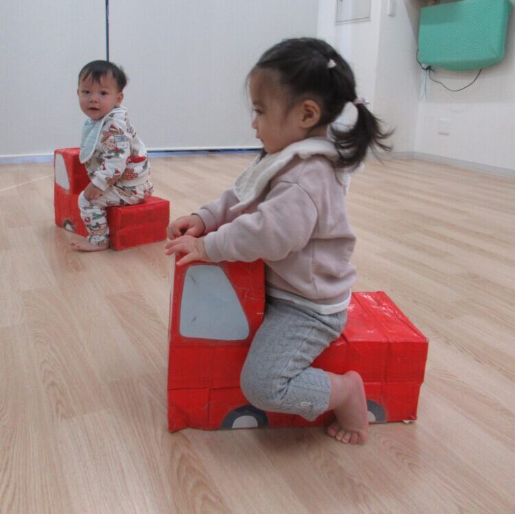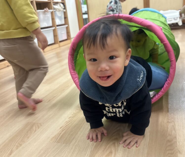 全身を使って遊びながら、手指の発達や感覚遊びをたっぷり楽しむことができました♫