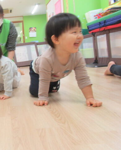 まずは準備体操からのかけっこ、はいはい(トナカイさんになるよ)運動をします