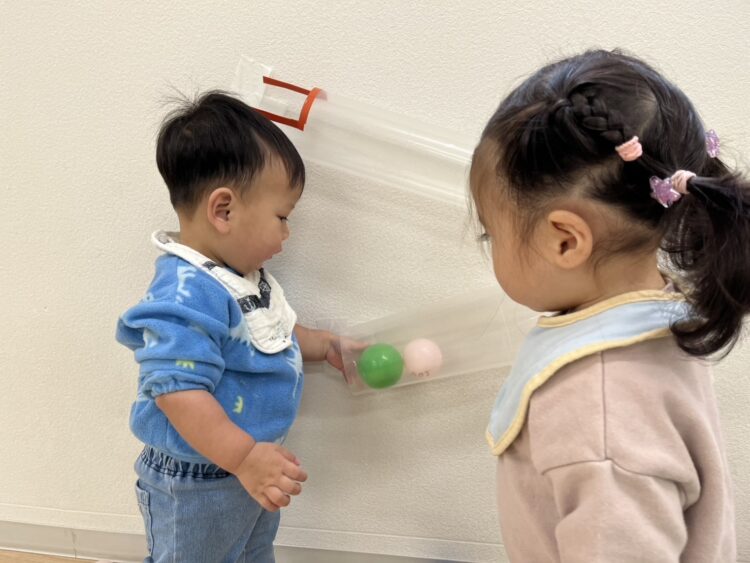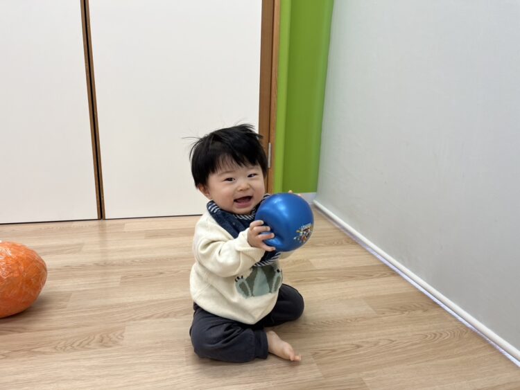 0歳児クラスは、室内でゆったりとボール遊びをしました⚽️
