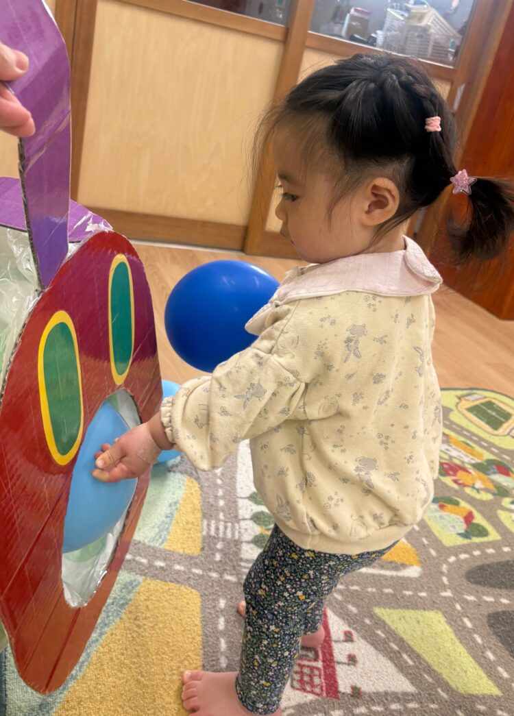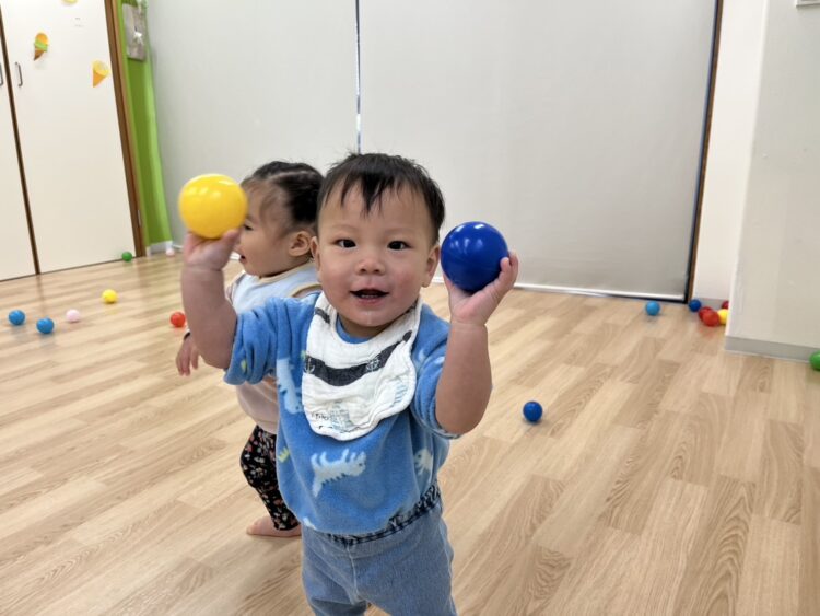0歳児クラスは室内でゆったりと過ごし、風船あそびや保育者との触れ合いを楽しみました。好きな遊びを見つけて夢中になる姿がかわいらしかったです🎈