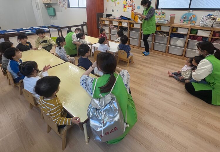 子どもたちは、保育者の声かけに耳を傾けながら、落ち着いて参加することができました。