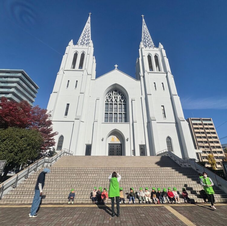 暖かい日差しに誘われて、そら・ほし組で近くの教会までお散歩に出かけました😁