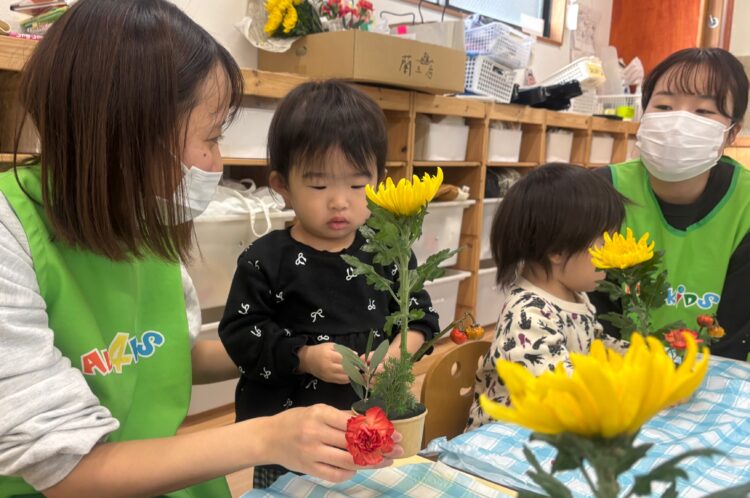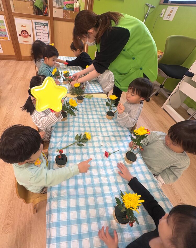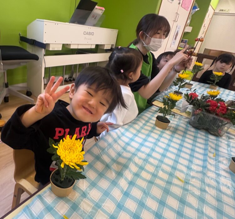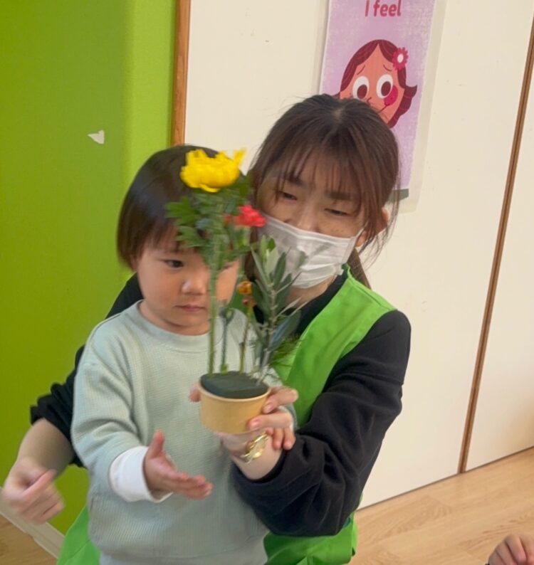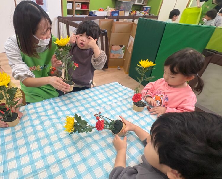 今回のクラス別活動では、フラワーアートと室内遊び・感覚遊び、それぞれの年齢に合った楽しい体験ができました。