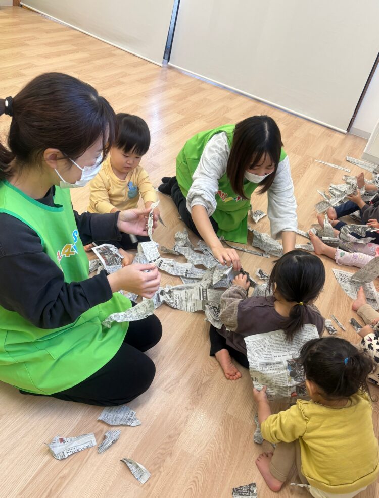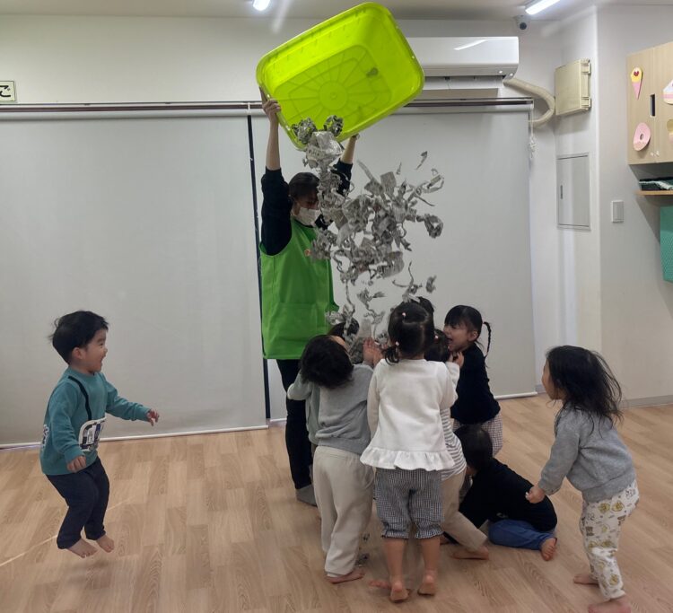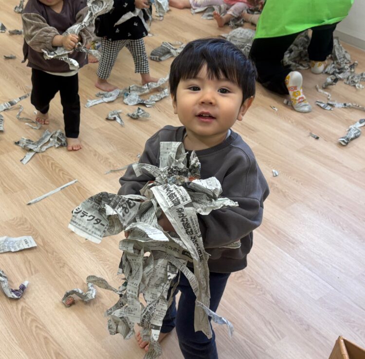 破ったときの心地よい音や、ふわっと舞う新聞紙に子どもたちは大喜び