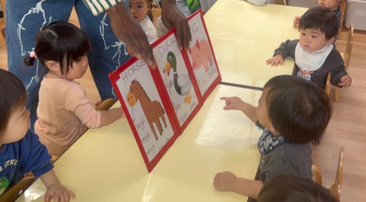 リトミックでは、さまざまな動物に変身しながら、元気いっぱい体を動かしていました![]()