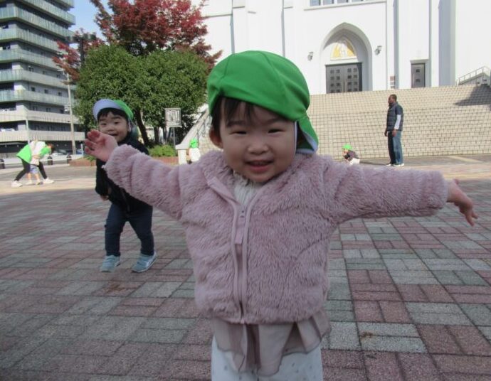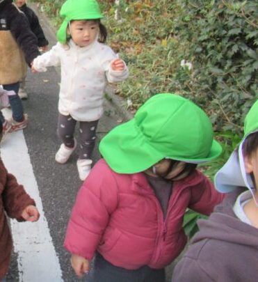 少し長い道のりでしたが、1歳児さんと2歳児さんで手をつないで一歩一歩ゆっくり、仲良く歩いていました