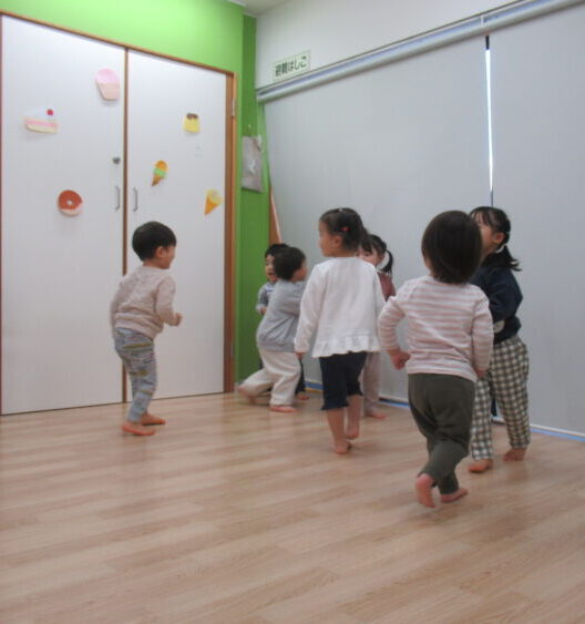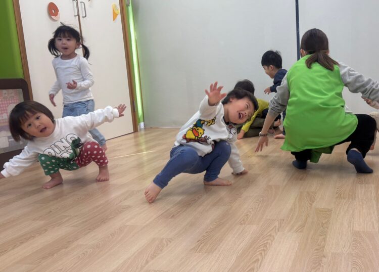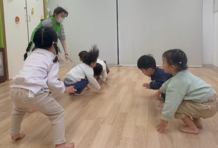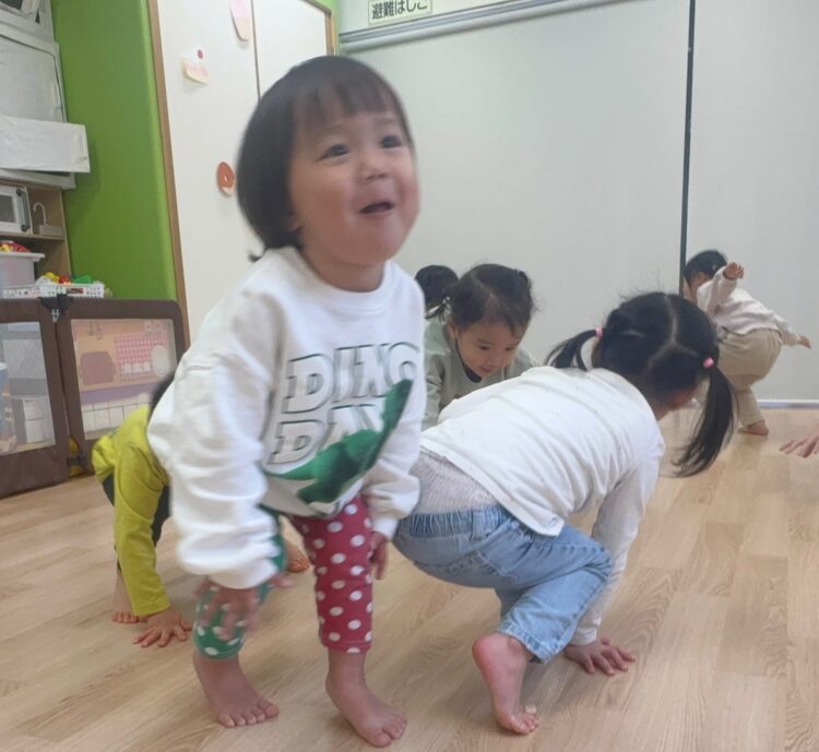 ひざを曲げて小さく歩く姿がとても可愛らしく、みんな笑顔で取り組んでいました