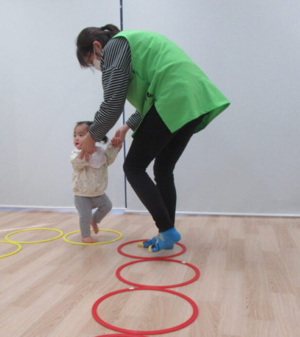 フープに足を入れるたびに、「ここだよ〜」と教えてもらいながら、