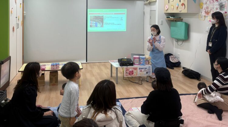 勉強会ではまず、災害時における液体ミルクの重要性について教えていただきました。