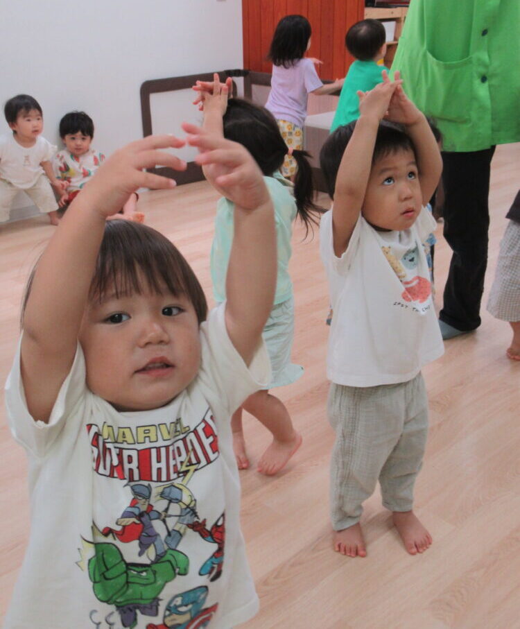 ぐーーーんと手を上げてね