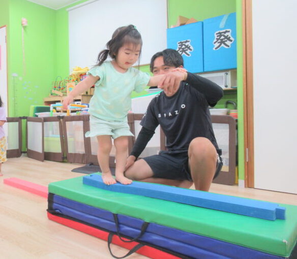 いつもより高い平均台に挑戦