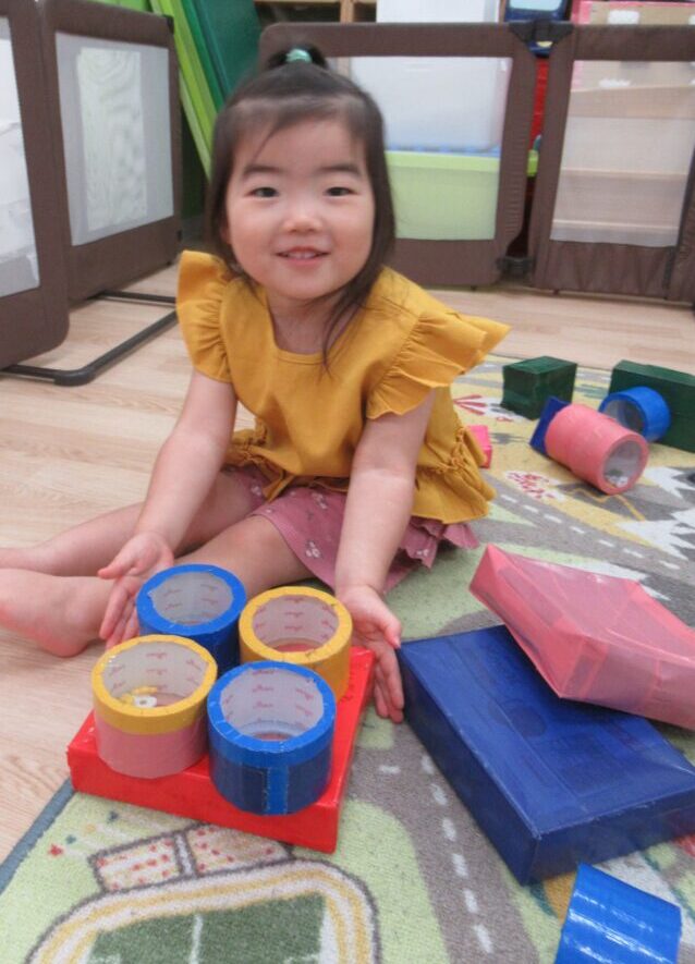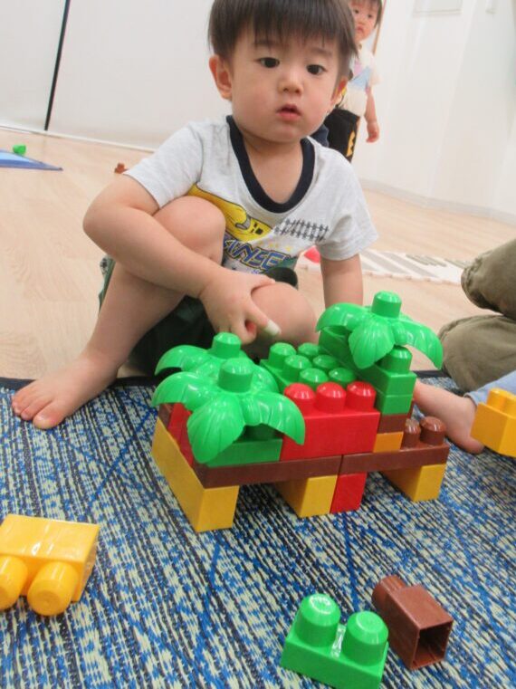 水遊びお休みのお友だちは、ブロックや素材遊びを楽しんだよ