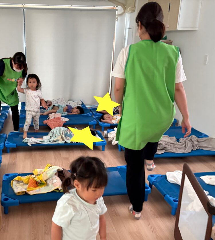 寝ている子どもたちを安全に起こし