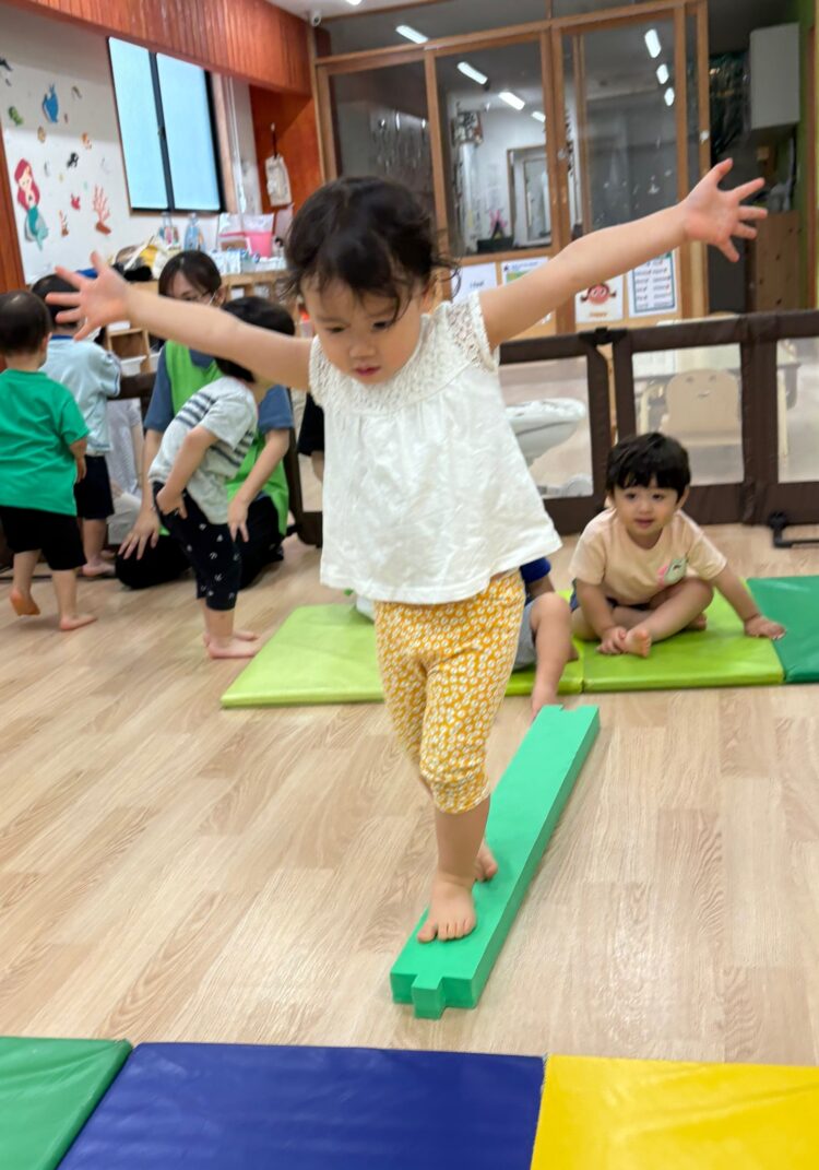 平均台を使って一本橋の上を歩くよー