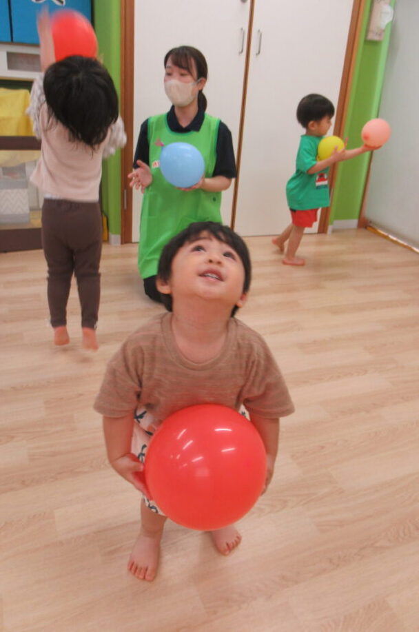 0歳児さんも安全に配慮しながら楽しんでいます🎈