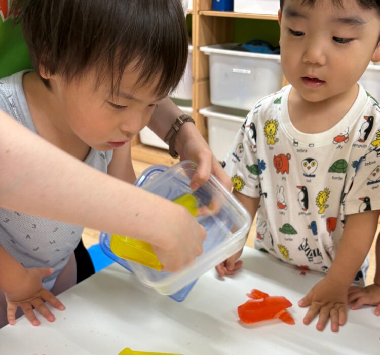 色に興味を持ち始めている葵園の子どもたち。