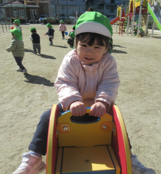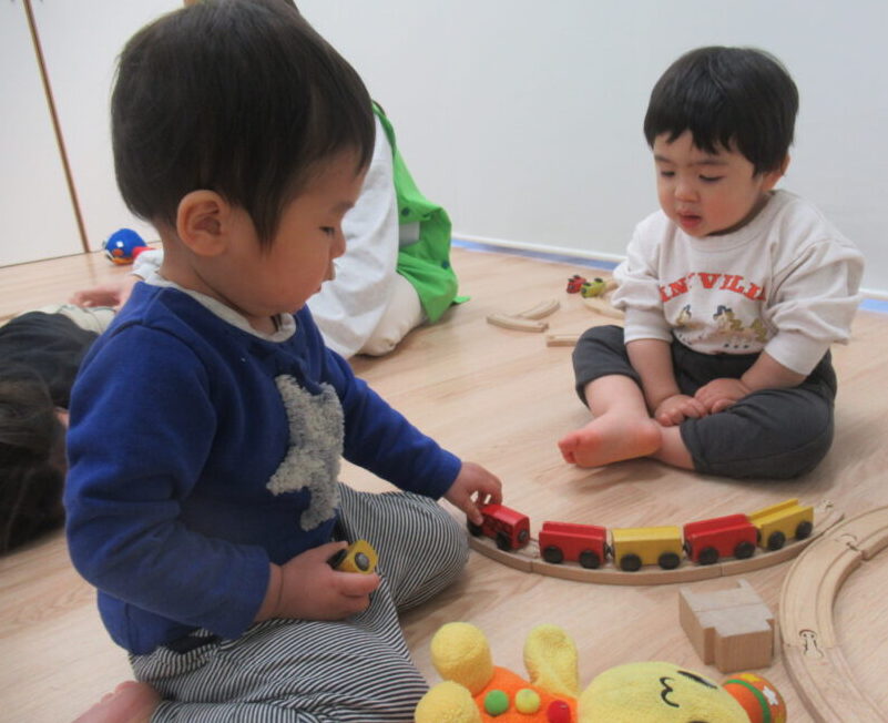 次年度のそら組への憧れ、また大きい子の遊びを見て