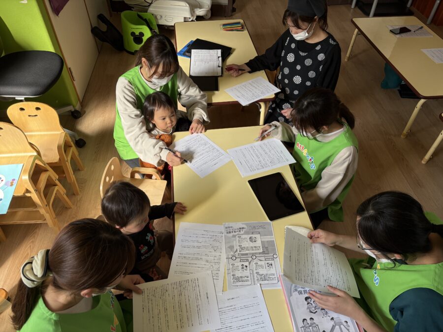 葵園では、子どもたちの午睡の時間を利用して園内研修を毎月実施しております。