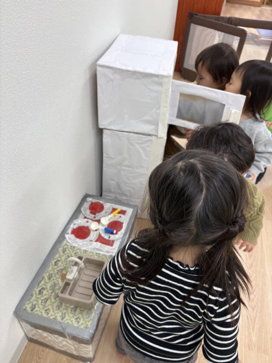新しい手作り玩具の電子レンジと冷蔵庫が大人気でした✨