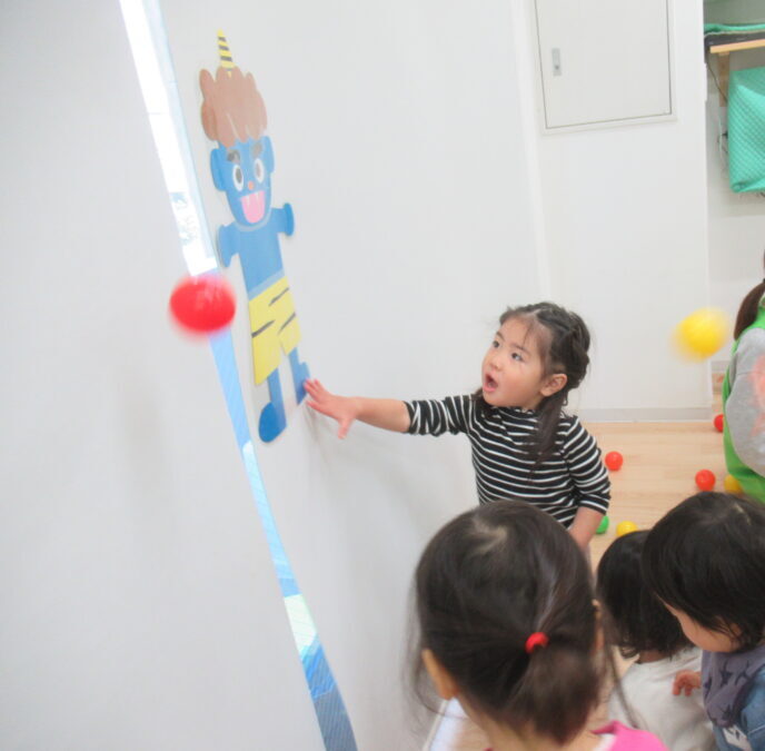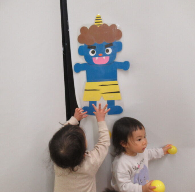 今日は、室内で節分に向けて豆まきの練習をしました👹