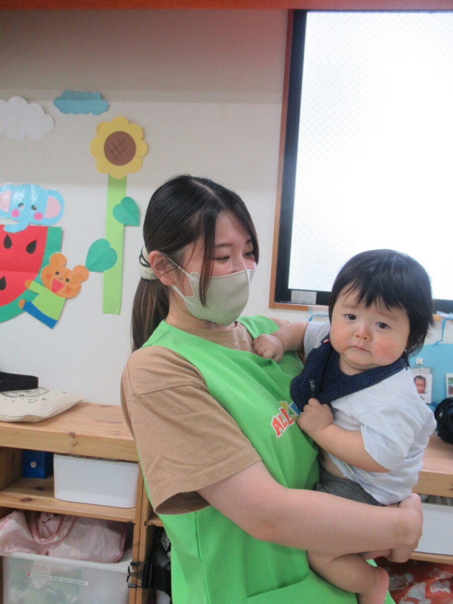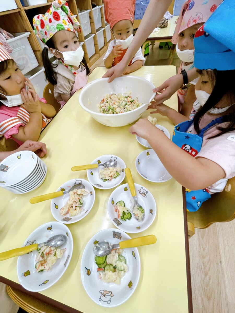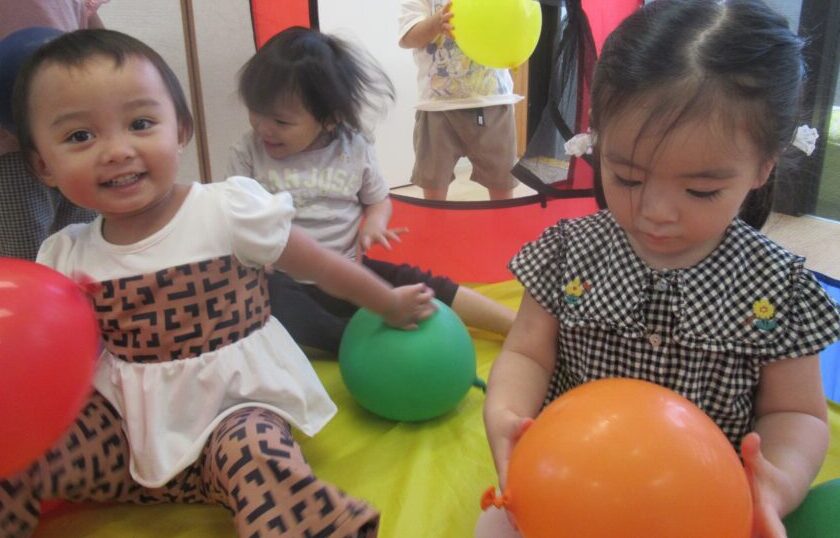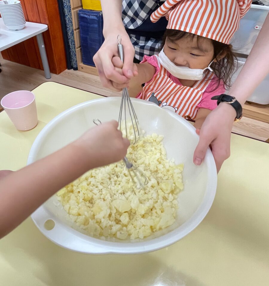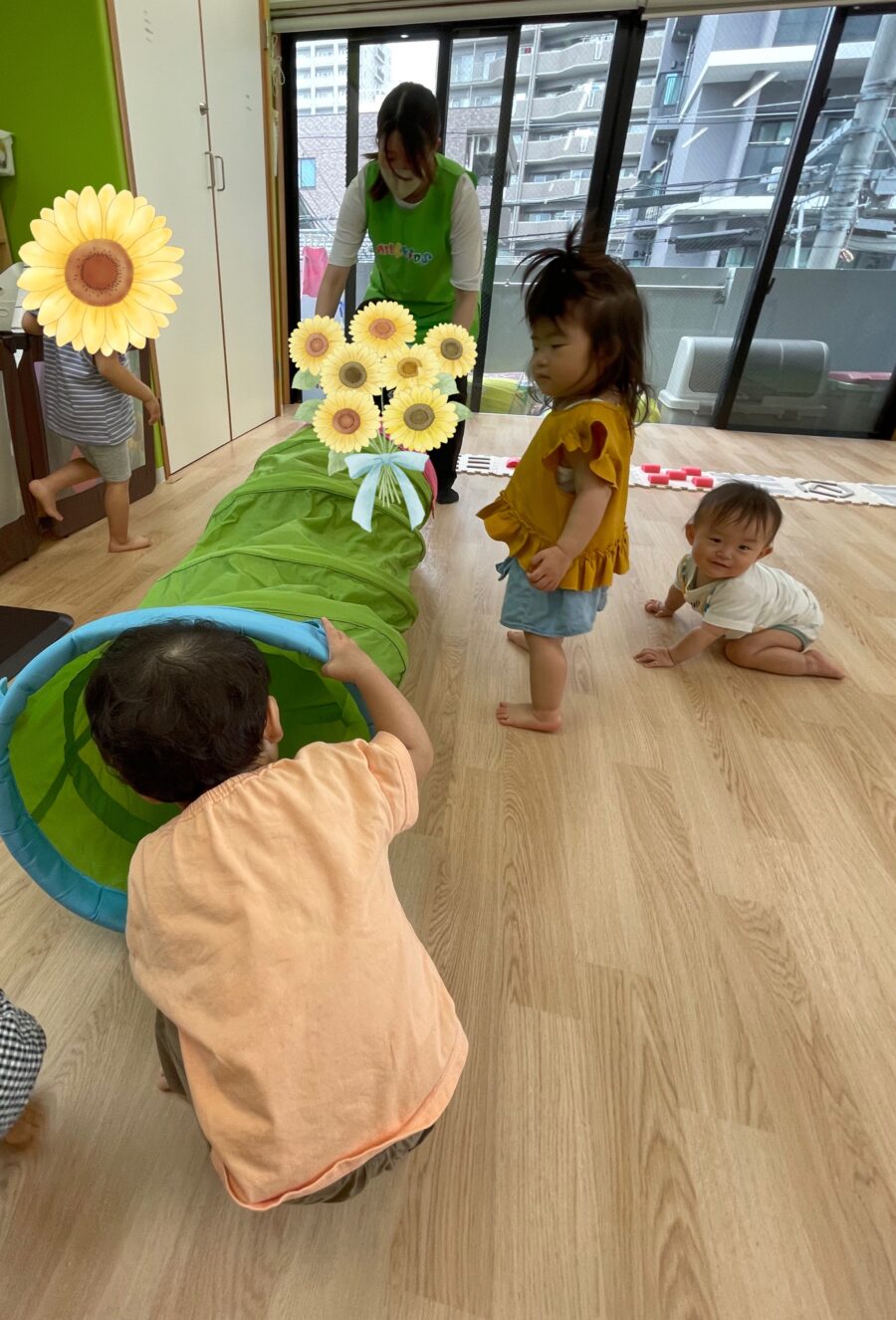 何かわからず不思議そうに戸惑っている子もいましたが、積極的に寒天を触って遊ぶお友だちや先生と一緒に触れることで安心して遊び始めました。