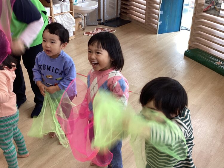 「早く公園いきたい!」「今日はお部屋であそぶんだ!」などなどみんな朝からやりたいことをお話ししてくれました![]()