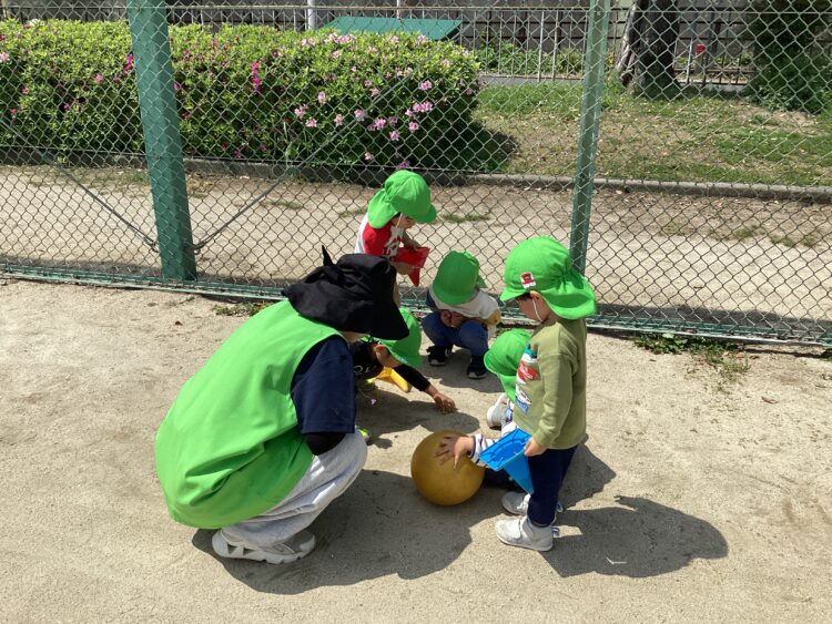 また、三角コーンに砂いっぱい入れて「先生のあいすくりーむ作ってるの」「バイキンマンにもつくるの!」とアイスクリームに見立てて遊ぶ子もいました🍨想像力豊かで素敵ですね😳🧡