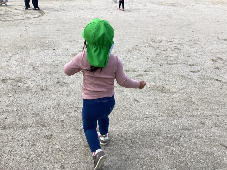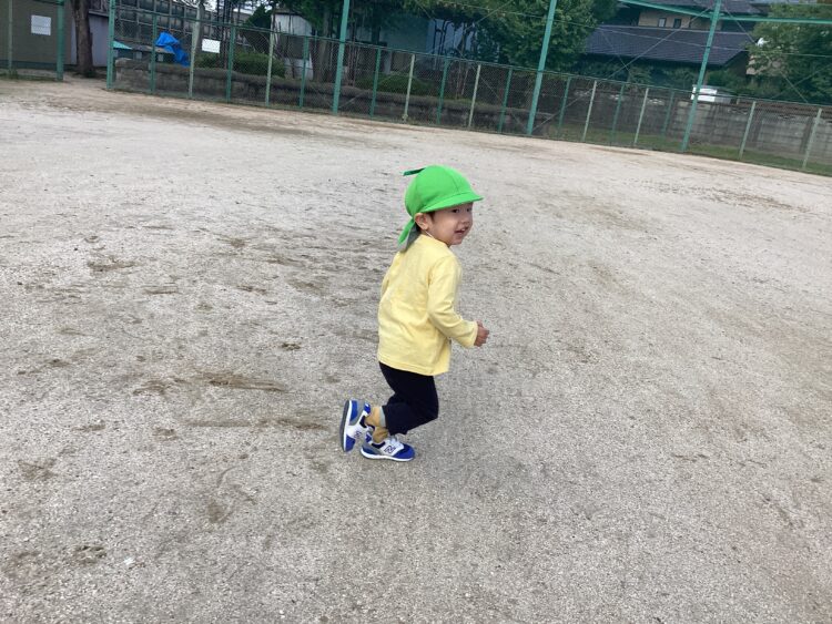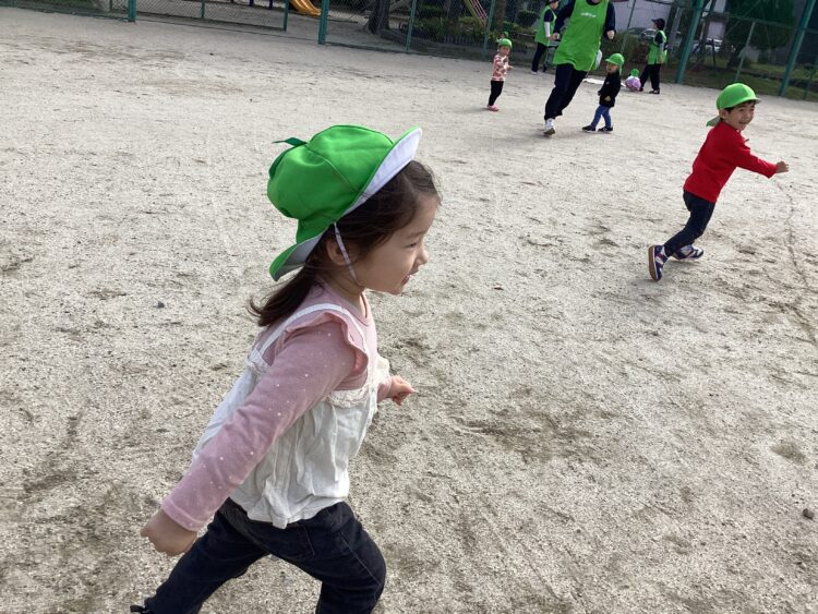 グラウンドに着いて、危険なものがないかのチェックが終わると、一斉に走り出したお友だち🏃♀️