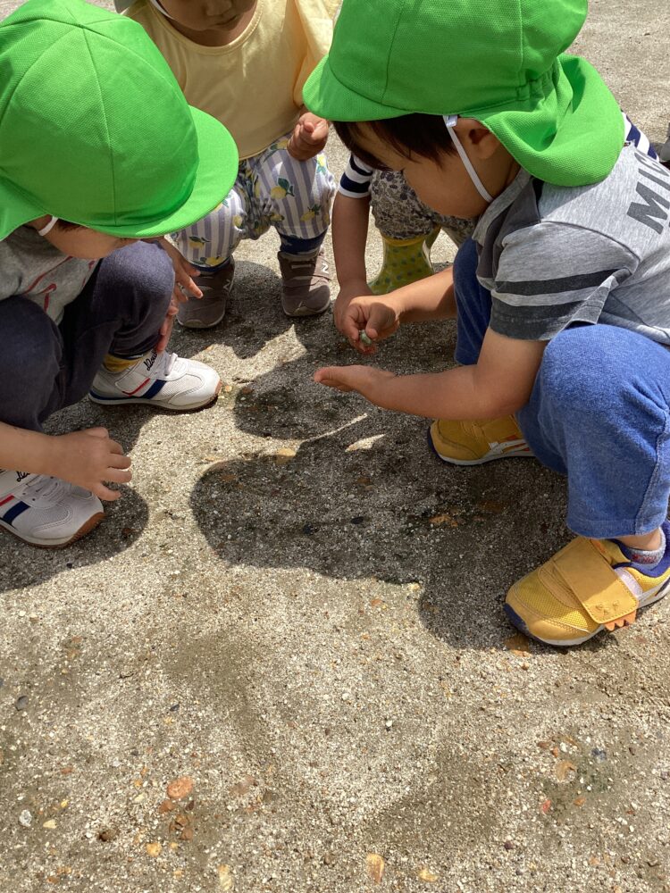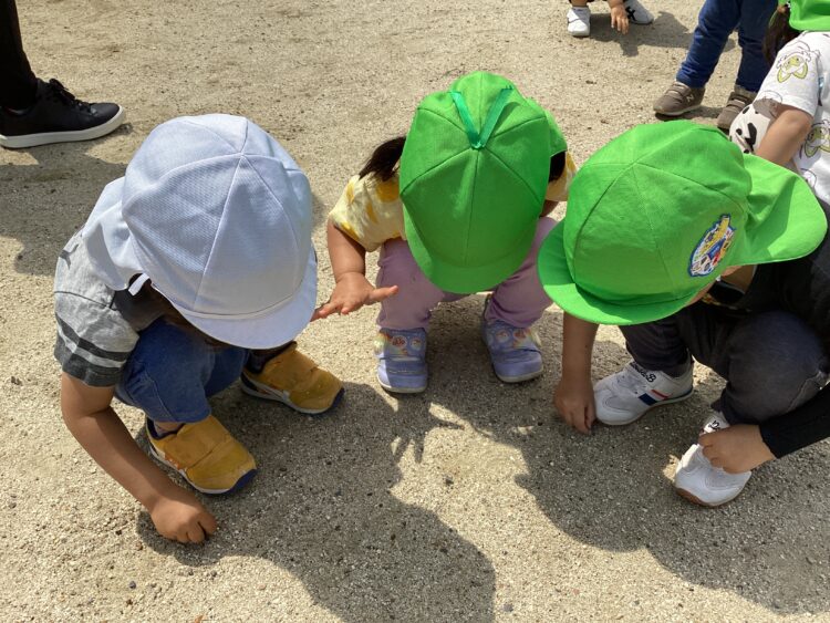 石を集めたり、地面にお絵描きしたりしている子を発見👀