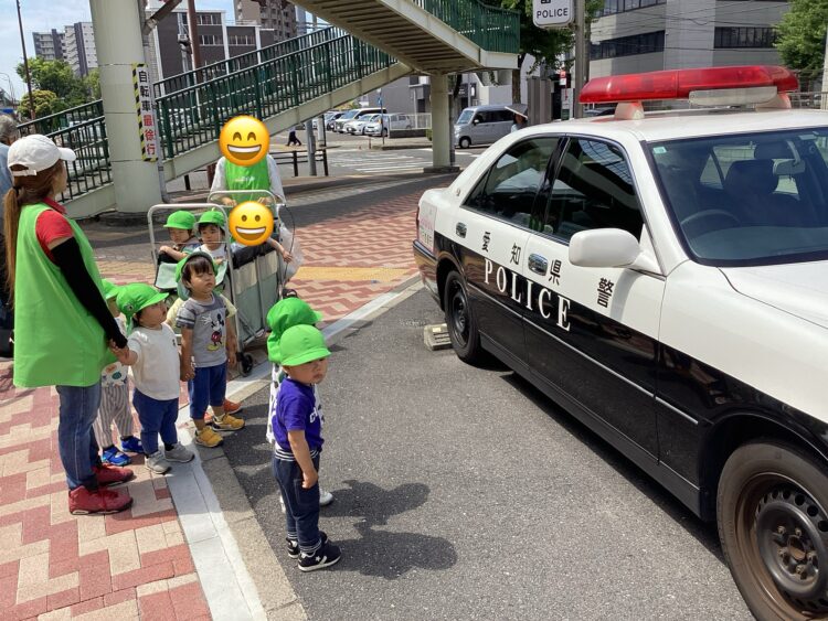 お散歩へおでかけしたお友だちは、間近でパトカーをまじまじと見てとっても嬉しそうでした🎵