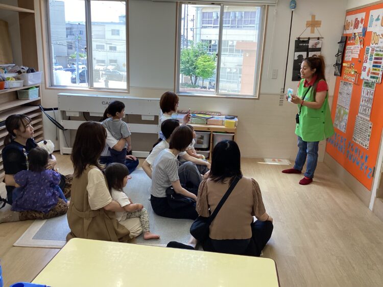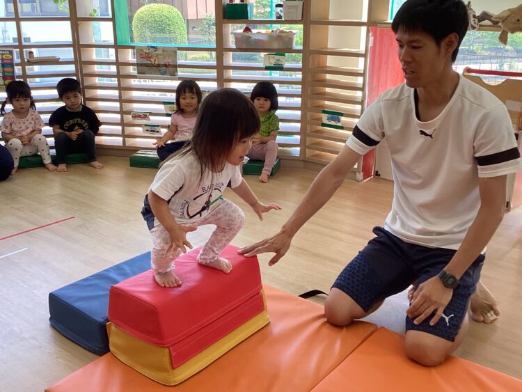 ちゅうりっぷ組さんも、先生に手を添えてもらって一生懸命参加していました😄