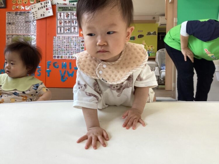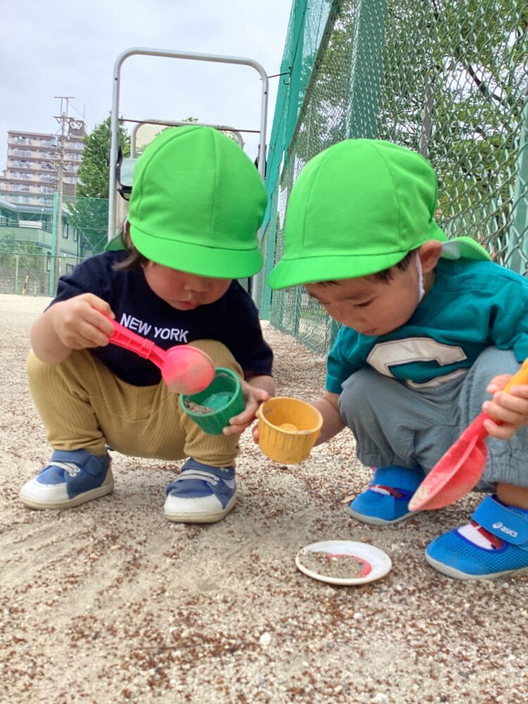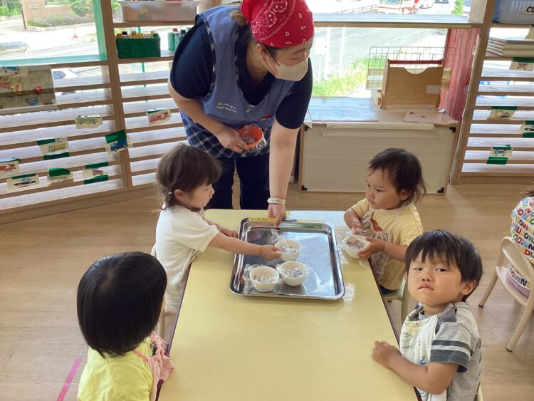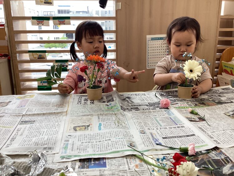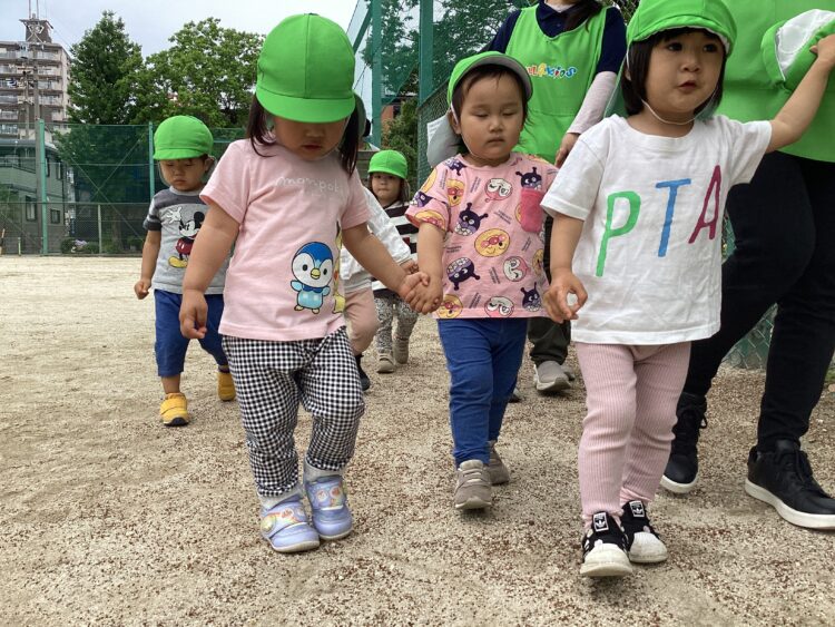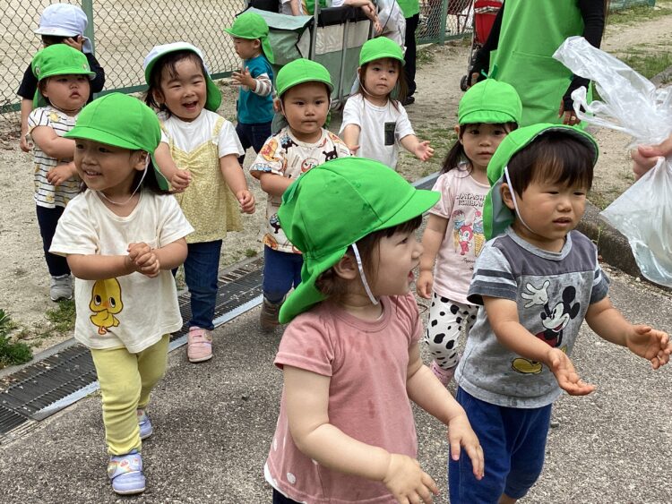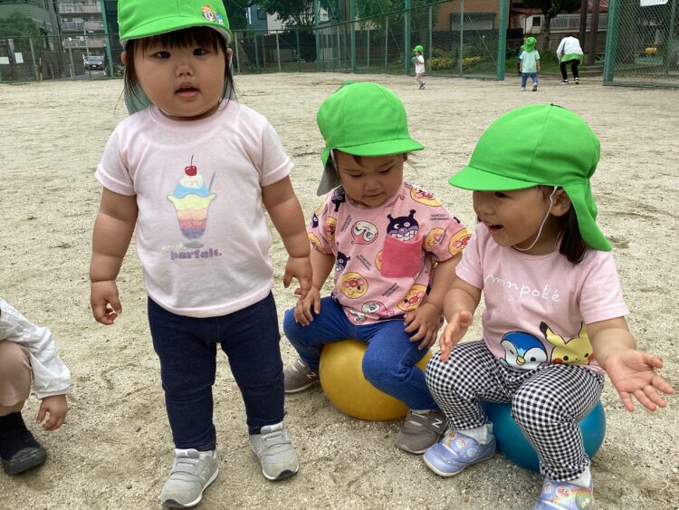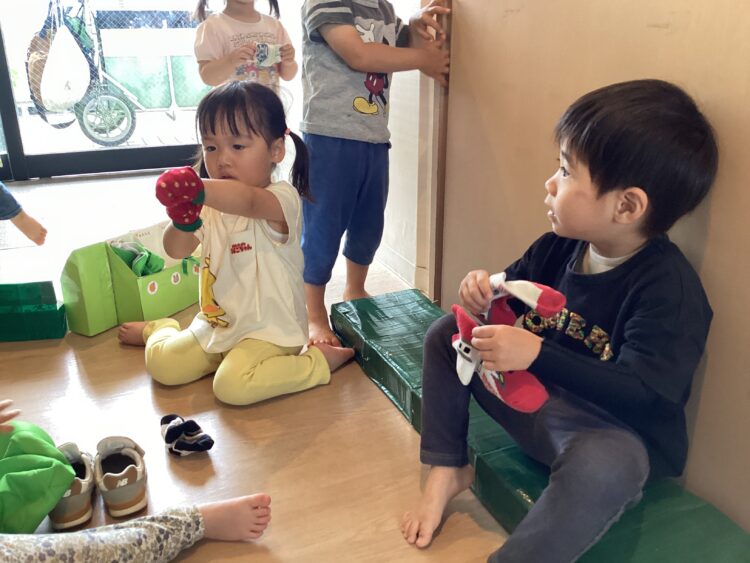 ひまわり組さんたちは履いてきた靴下のデザインを見せ合いっこしながら、自分で支度を進めていました![]()
