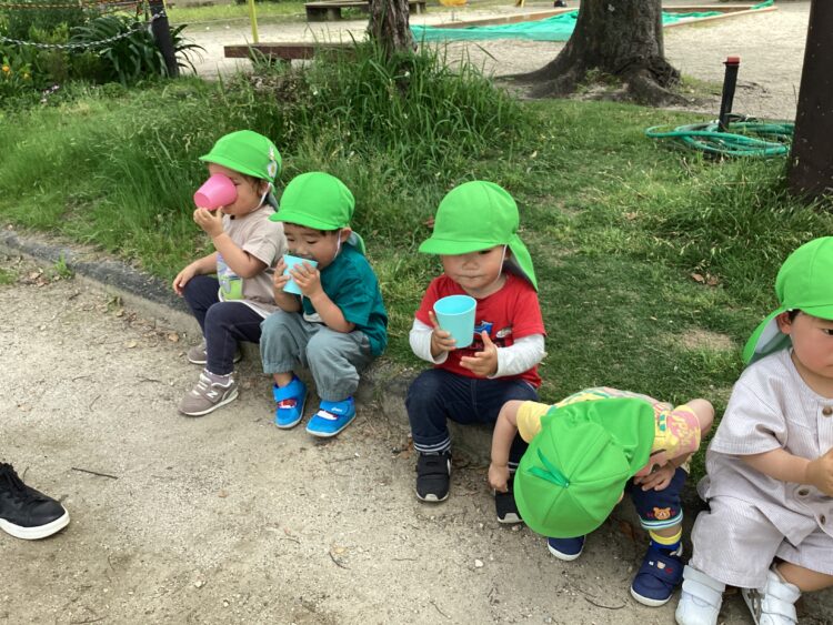 たくさん応援したあとは、冷たい水が入った袋をプニプニと触ったりシャワーのように少し体にかけてもらったりしながら、楽しく過ごしました![]()
