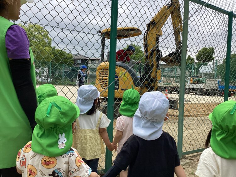 ダンプカーから土を降ろす場面では目を輝かせながら「いっぱいだね」「がんばれー」などの声が飛び交っていましたよ![]()