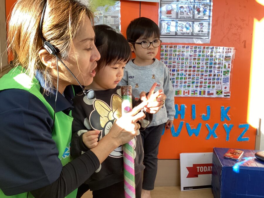 たんぽぽ組さんも、お兄さん、お姉さんが遊ぶ様子を見て、同じように真似て楽しんでいましたよ☺️