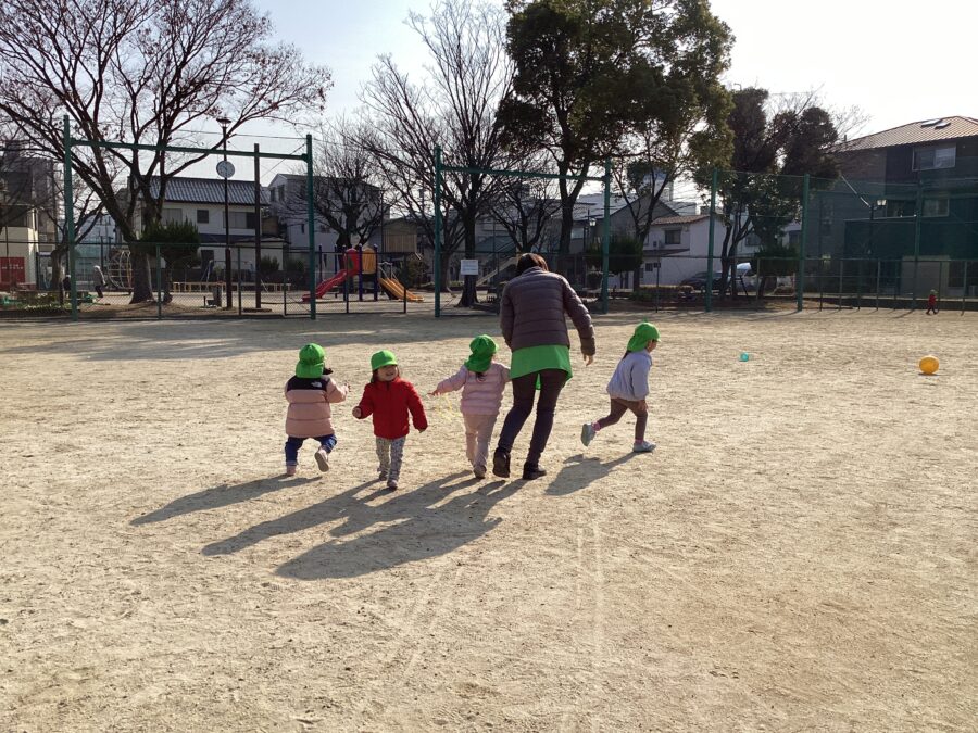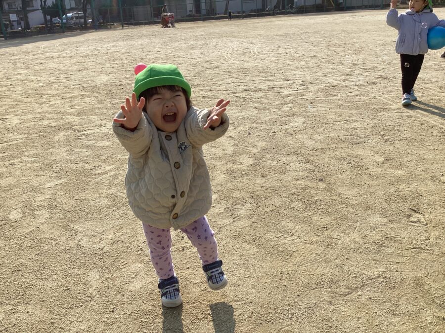 歌い終わると「待て〜!」「食べちゃうぞ〜!」と可愛い笑顔で追いかける子どもたち🩷
