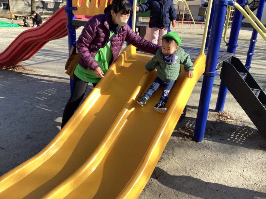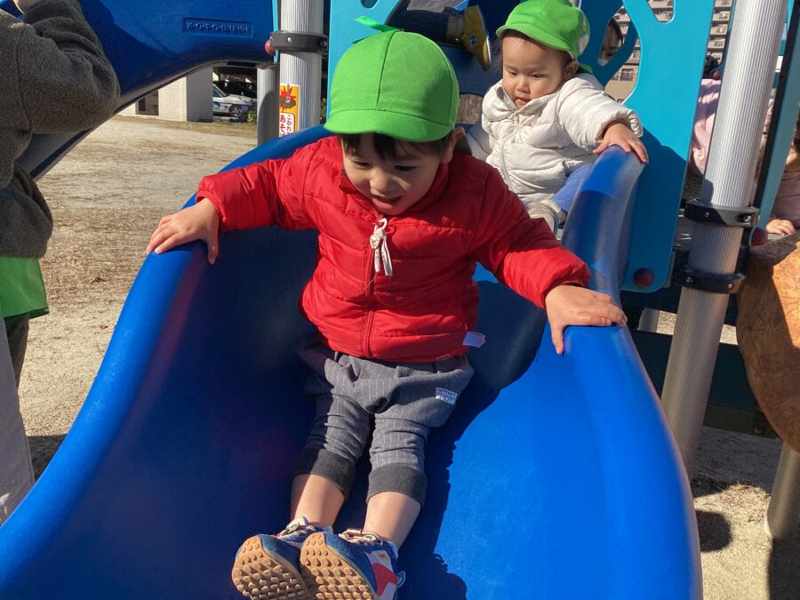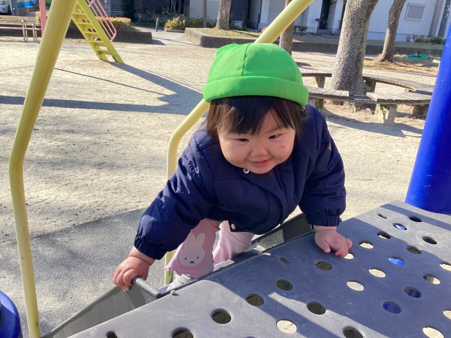 大好きな滑り台で遊ぶために、自分でどんどん階段を登っていましたよ👏