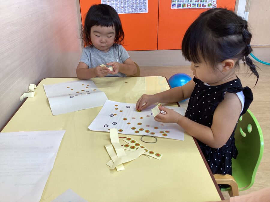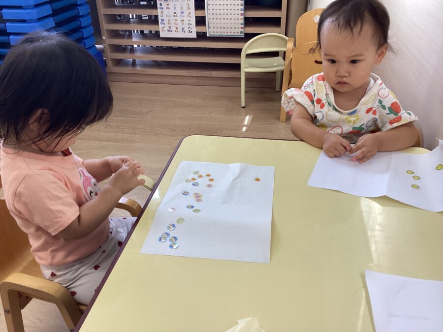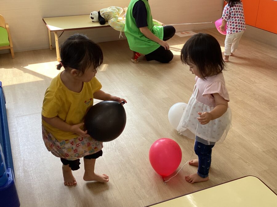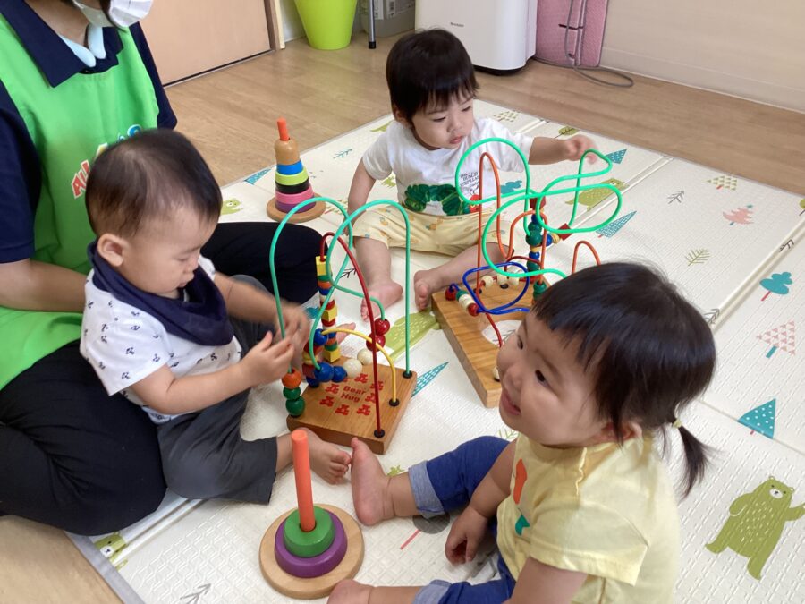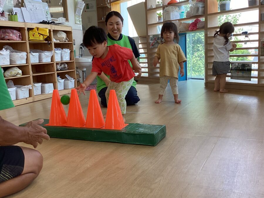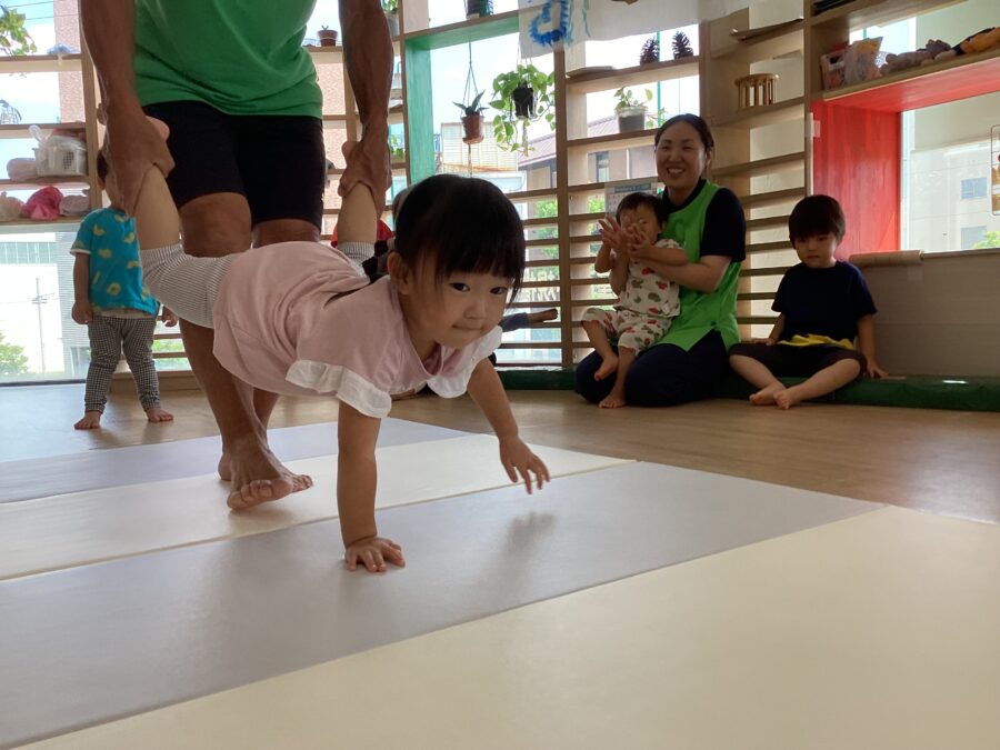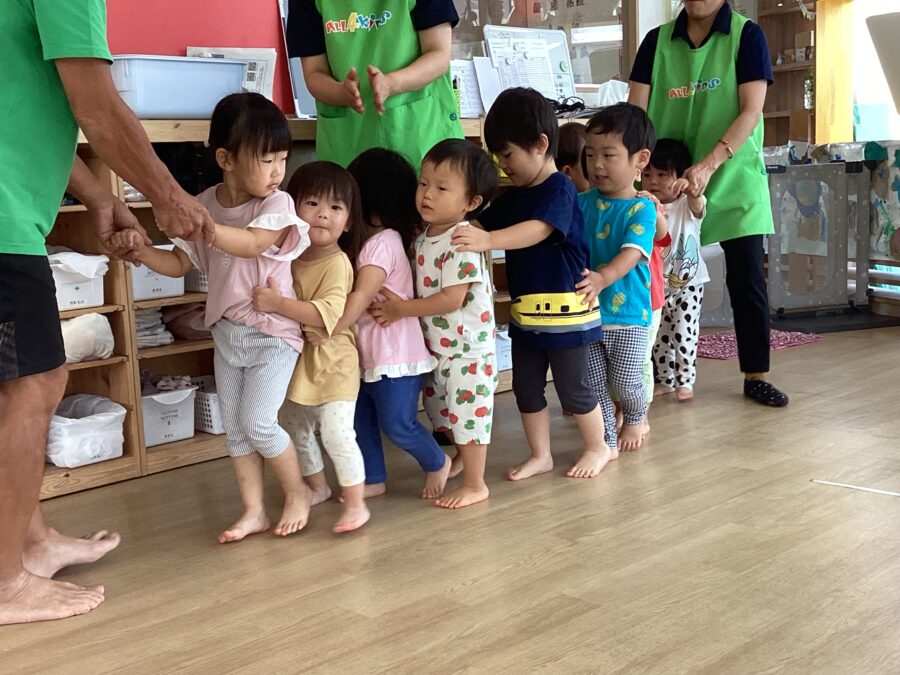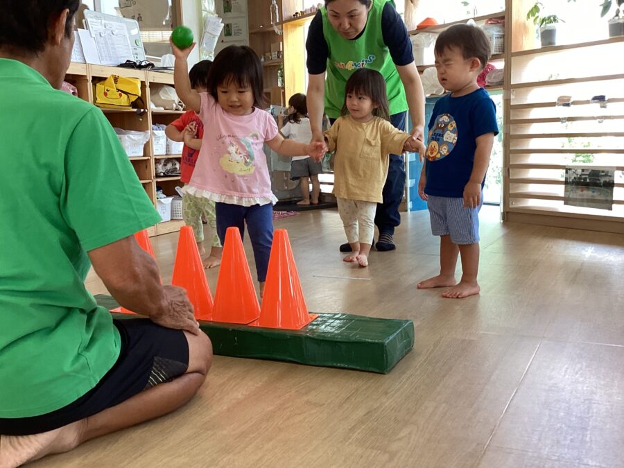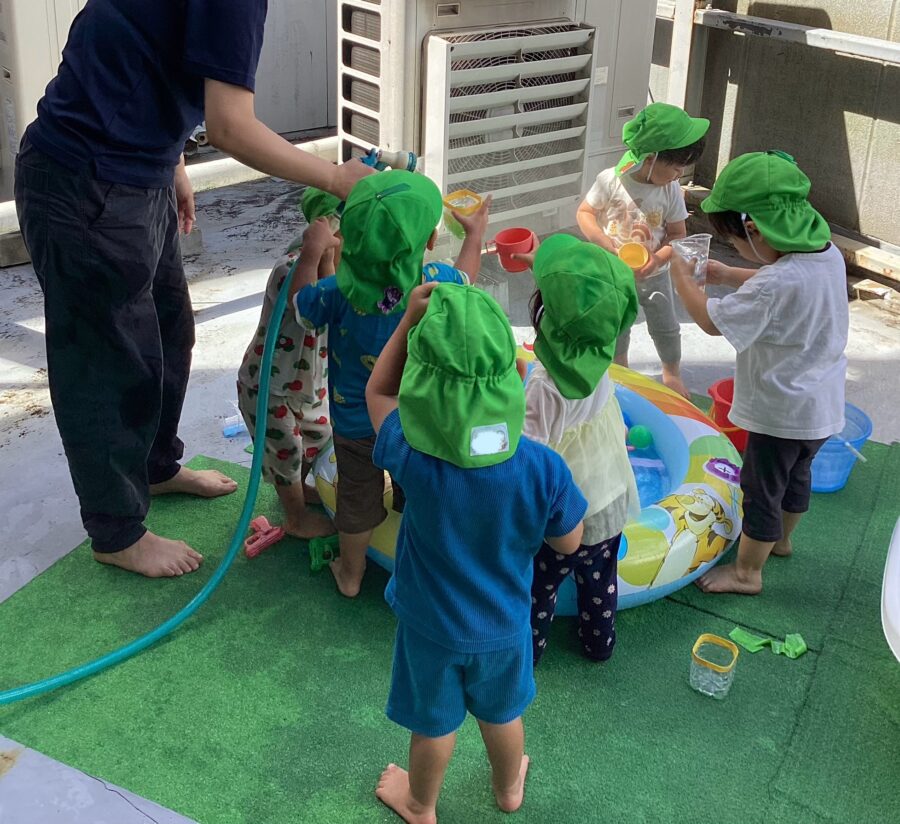 水遊びではキリンさん🦒のスポンジを見つけると「せんせい、みて〜!」と嬉しそうに教えてくれました✨