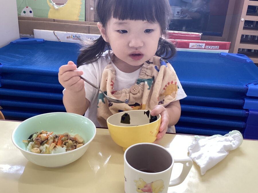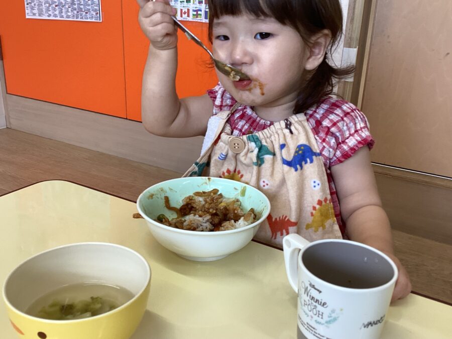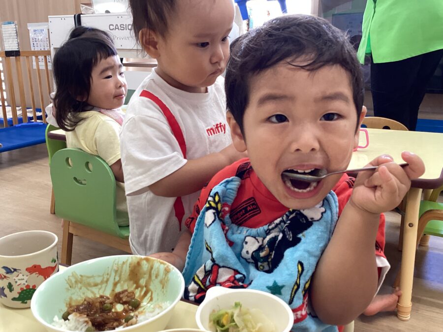 今日も元気いっぱいあそんだ後は、美味しい給食Time![]()