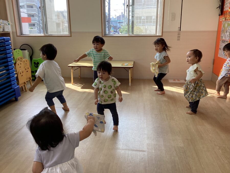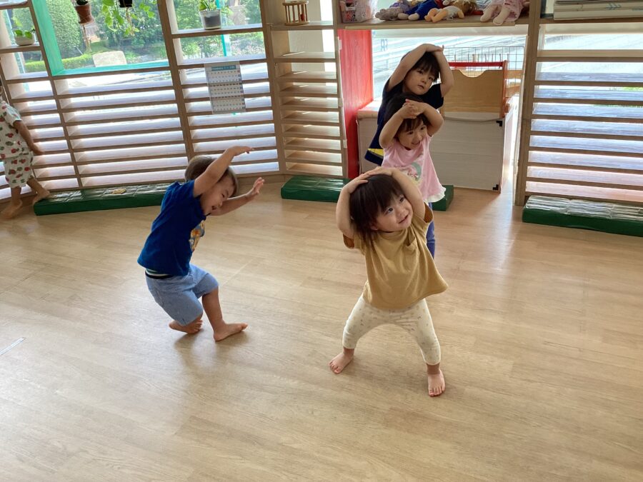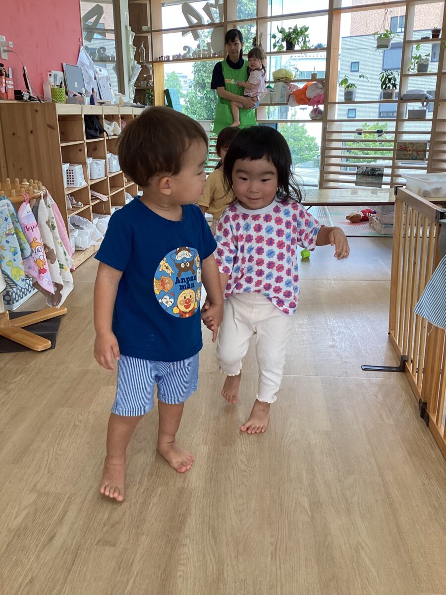 今日も大好きな友だちや保育者を見つけて「おはよう!」「グッドモーニング✋」と挨拶をしてくれたお友だち😄