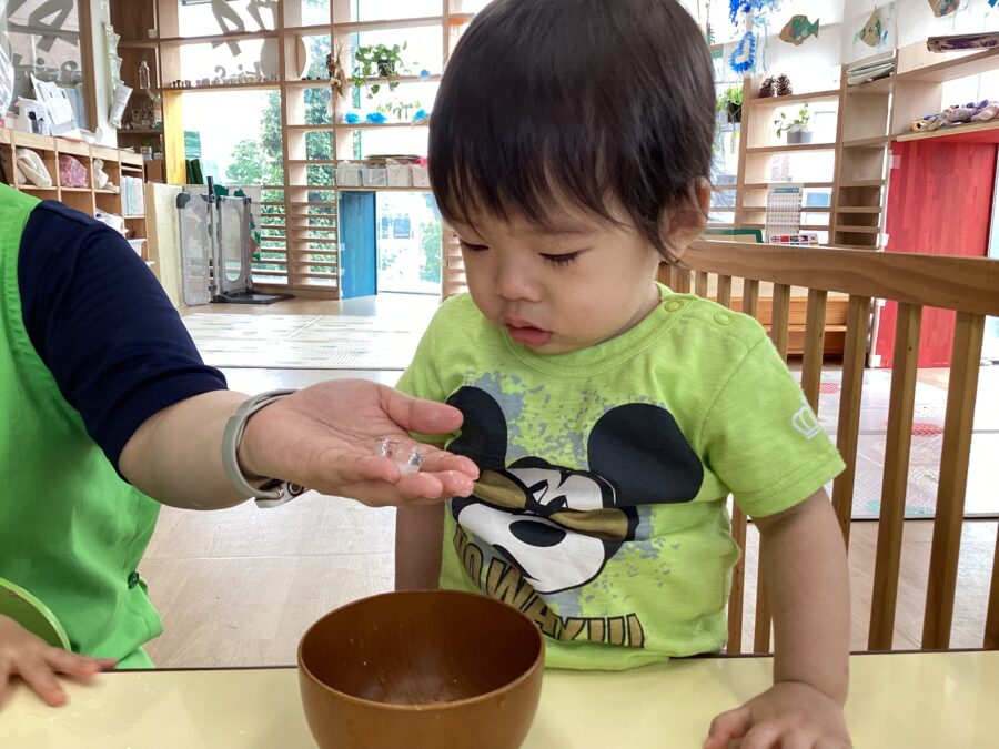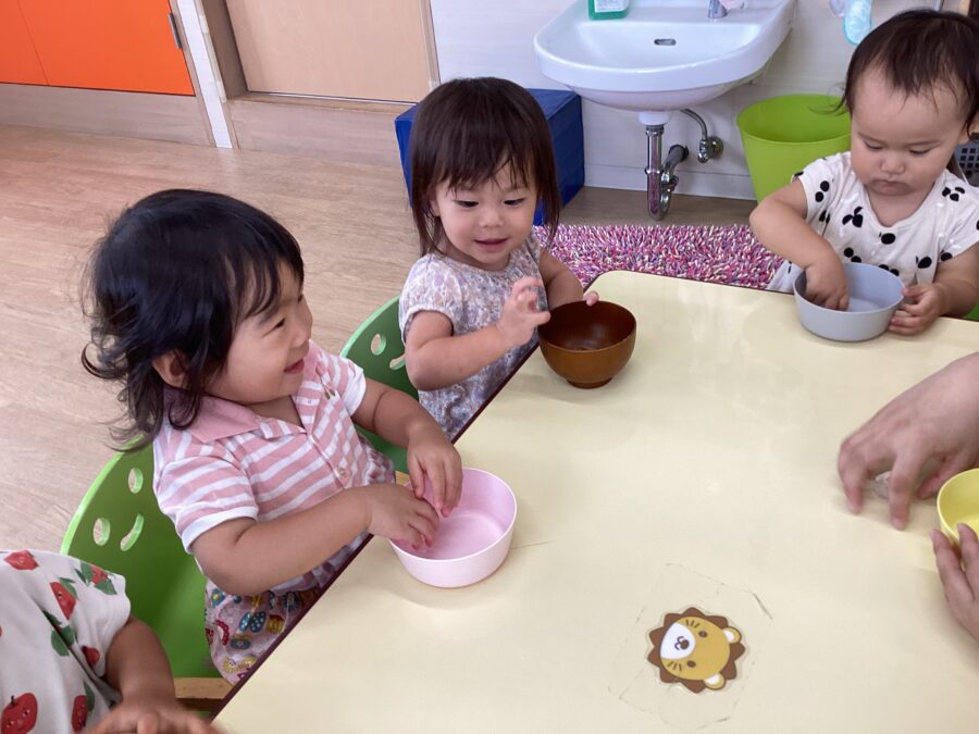 たんぽぽ組のお友だちもドキドキしながら冷たい感覚を楽しんでいましたよ
