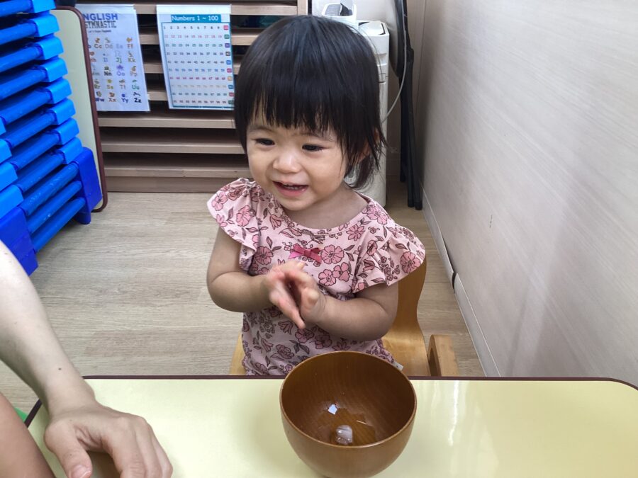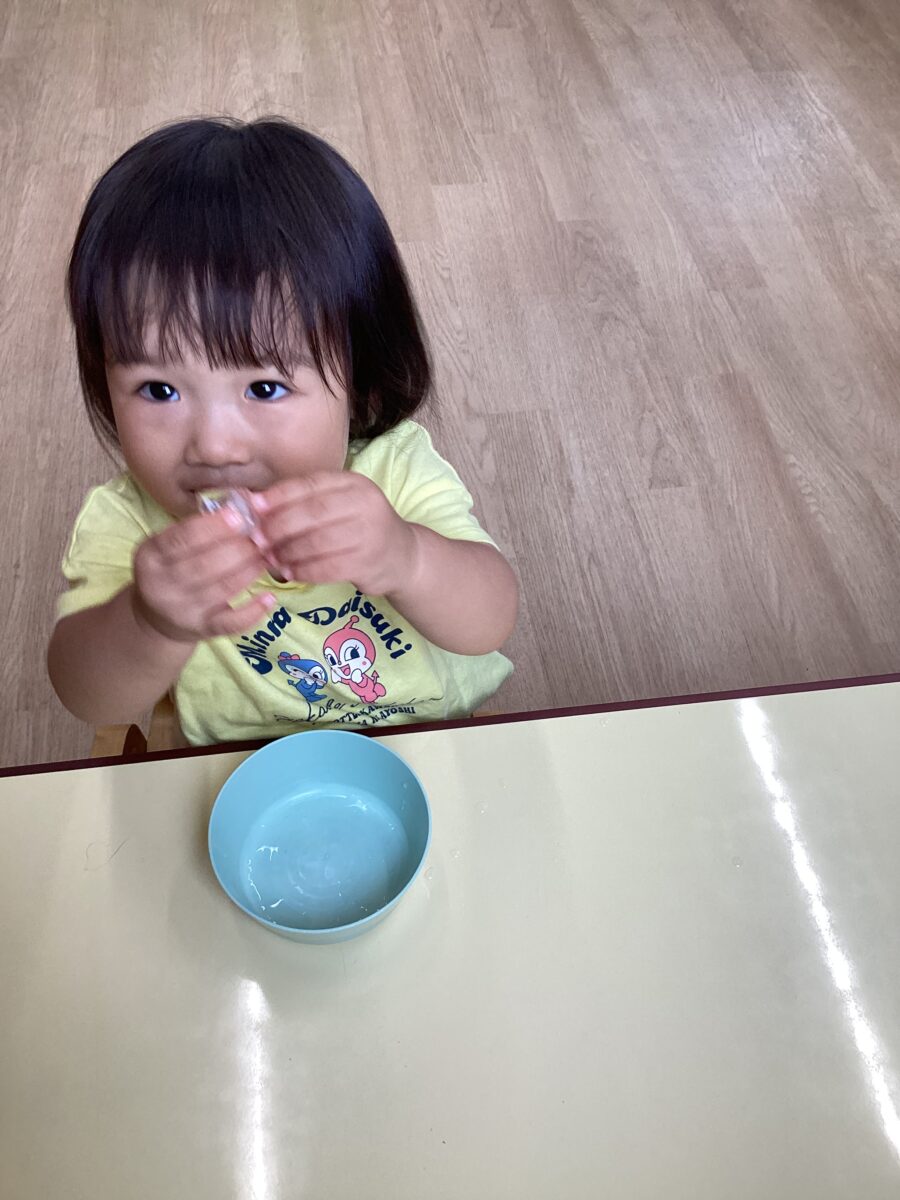「みてみてーーー!!」とカップにたまった氷を嬉しそうに見せてくれました🧊