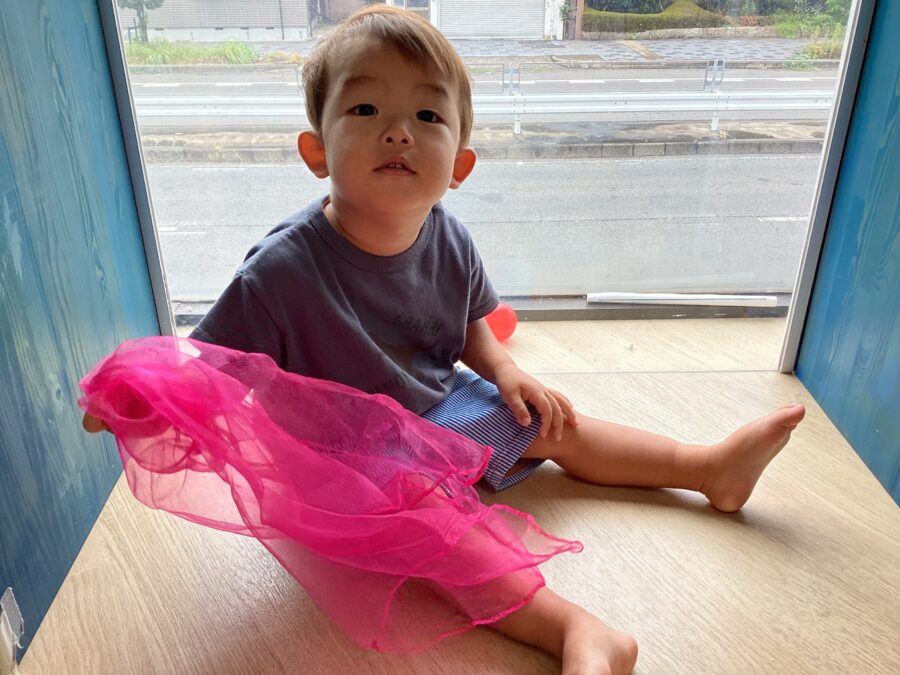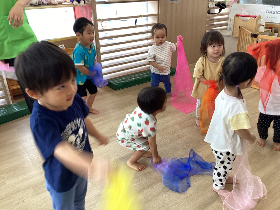 シフォン布を上にパッと上げて花火に打ち上げる遊びもしました