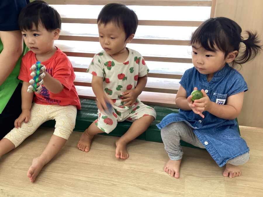 曲が終わってもまだ楽器で遊びたくてウズウズするお友だちもいましたよ!