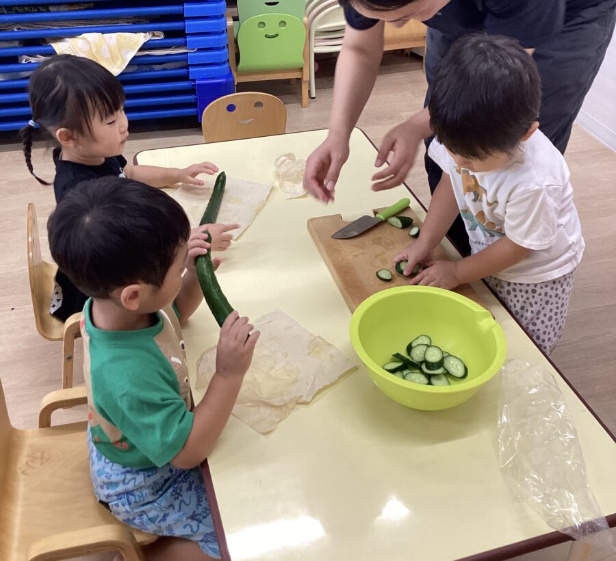みんなできゅうりのカンパイをして「おいしいね❤️」とニコニコで食べていましたよ。