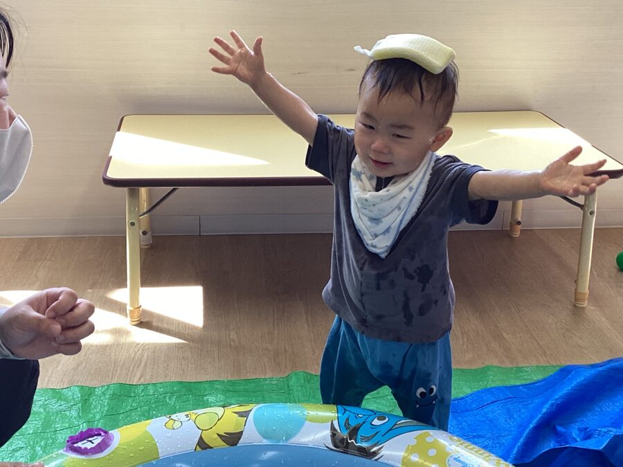 久しぶりにプールを出して、水遊びの準備をしていると、子どもたちも遊びたくてうずうず😆