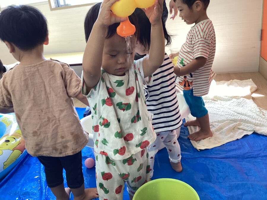 お水を頭からかぶってもへっちゃら!むしろ喜んでニコニコで楽しんでいました✨