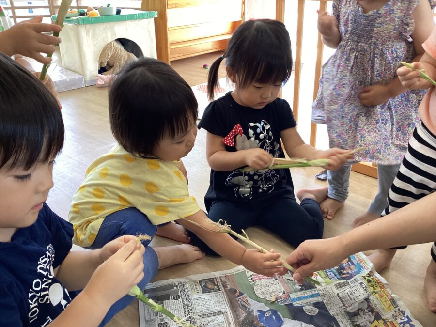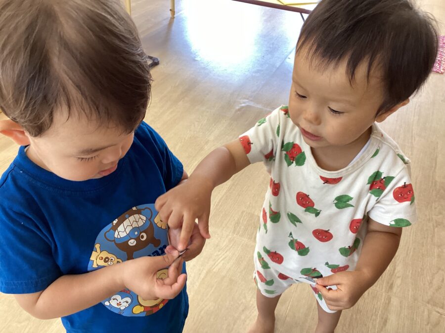 お休みは「花火みたよ~」「川であそんだよ!」など夏らしいおでかけをしていたお友だちのお話しを聞く事ができました