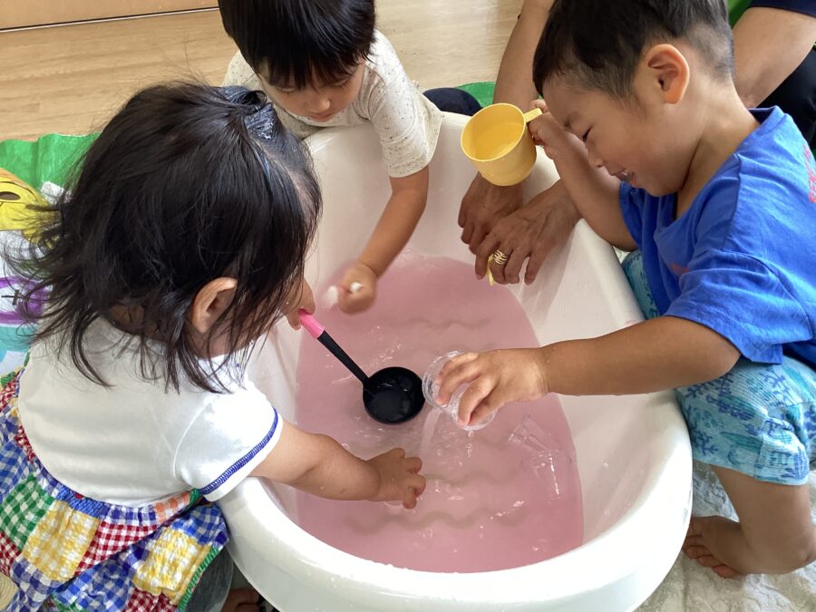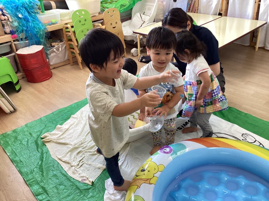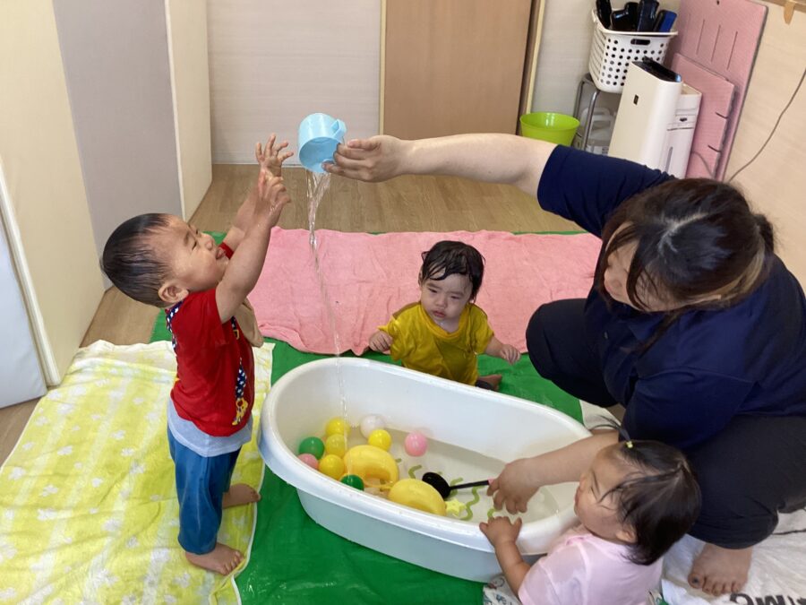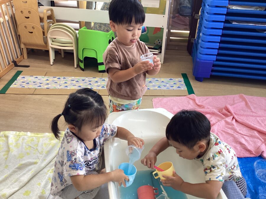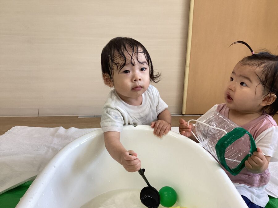 先ほどのおままごと遊びの続きを、お水でも楽しむ様子が見られました